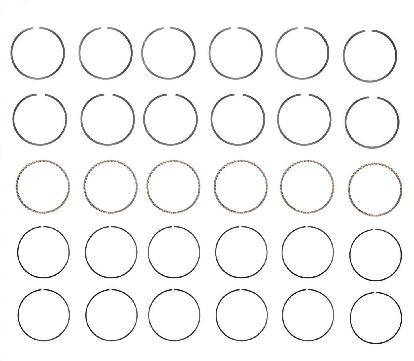Avant tout , les segments se composent d’un cercle incomplet en acier élastique, prévues pour s’emboîter dans les gorges du piston. Ainsi, le diamètre extérieur au repos est légèrement supérieur à celui du cylindre.